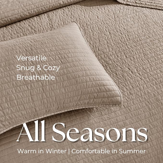 - Easy Care: Durable design ensures effortless maintenance. Long-lasting fabric with stripe quilting holds up to machine washes year after year without clumping. Lightweight construction allows for quick drying and compact storage. Stain-hiding neutral tones minimize upkeep. You can enjoy hassle-free time and less laundering with this quilt.