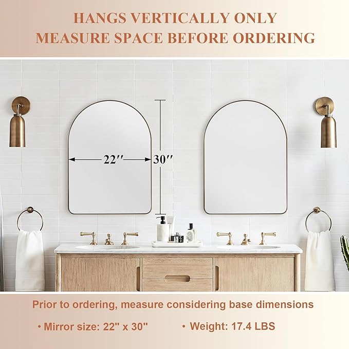 - Clear Reflection: Equipped with a 4mm ultra-clear glass surface, this arched mirror provides distortion-free reflections that make your grooming routine effortless; enjoy bright, crisp images that ensure you look polished at all times