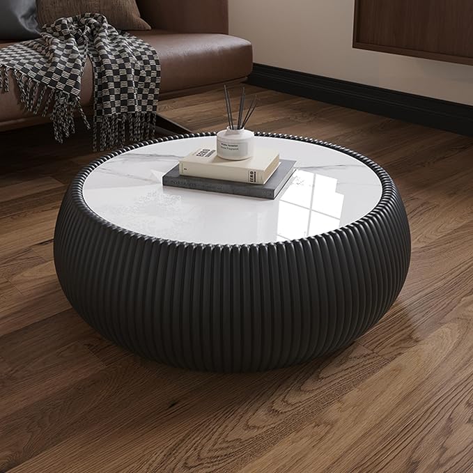 - 【Modern Round Coffee Table】Elevate your living space with this modern coffee table round, designed to impress with its stunning drum-shaped look. Cleaning is a breeze – just wipe down with a damp cloth to keep this funky coffee table looking as good as new