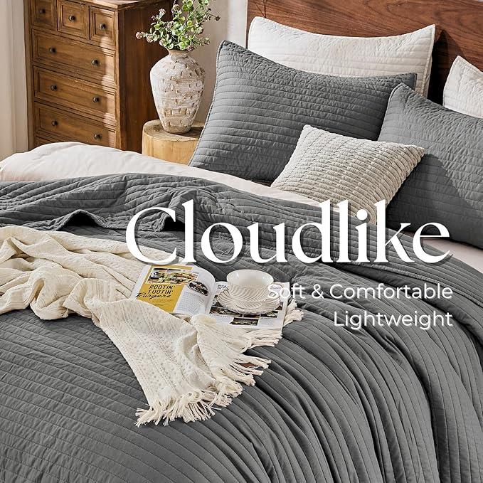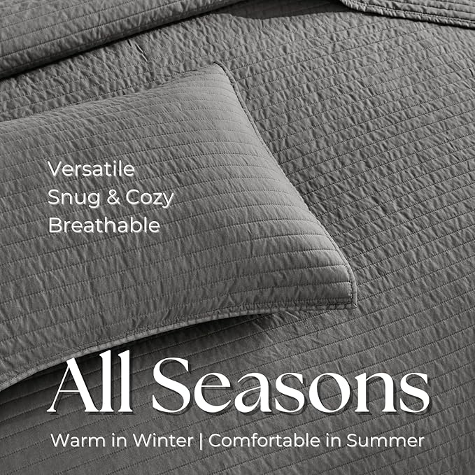 - Quality and Durable: The reversible quilt set combines double-sided brushed microfiber shell with reinforced stripe quilting for exceptional softness, rugged durability. The fabric resists pilling, fading, wrinkling and abrasion, while the filling maintains consistent loft without shifting or clumping. Precision stitching strengthens the stripe pattern, securing the fill and preventing edge fraying through repeated machine washes.