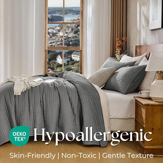 - Easy Care: Durable design ensures effortless maintenance. Long-lasting fabric with stripe quilting holds up to machine washes year after year without clumping. Lightweight construction allows for quick drying and compact storage. Stain-hiding neutral tones minimize upkeep. You can enjoy hassle-free time and less laundering with this quilt.