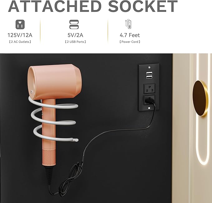 - Harmonized Power & Aesthetics: Streamline your routine with an integrated charging station, offering dedicated power for hair tools and seamless charging for personal devices such as phones and tablets, blending form and function.