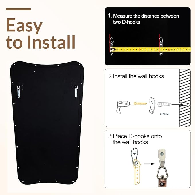 - 【Easy & Fast Installation】: Equipped with 2 pre-installed D-rings, all necessary hardware, and clear instructions—setup is hassle-free. If any hardware is missing, just reach out for prompt help. At 19.2 lbs, we recommend 2 people for installing this heavy antique bronze irregular mirror
