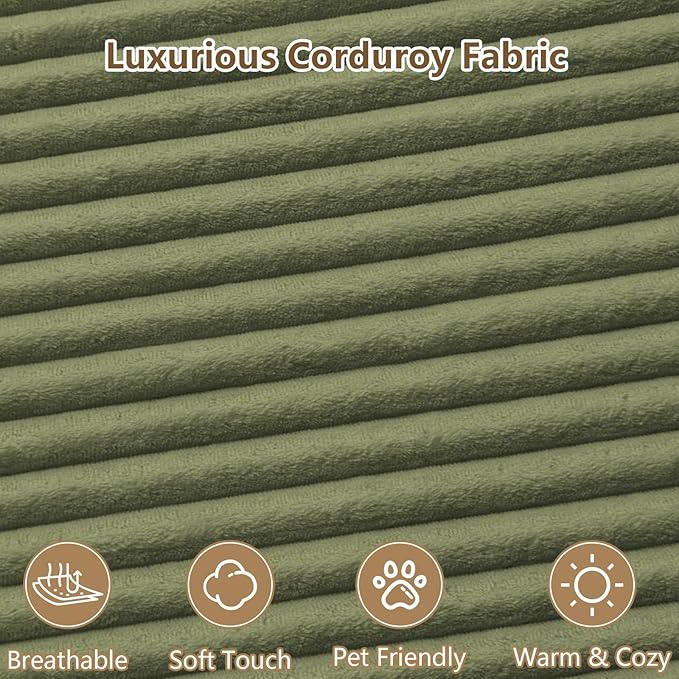 - Premium Corduroy Fabric: Soft & Easy-Care, Wrapped in high-quality corduroy, the sofa delivers unrivaled softness and warmth. The upgraded material boosts breathability and stain resistance—easy to clean and maintain. Its unique texture and gentle sheen stand out, while keeping you cozy in every season.