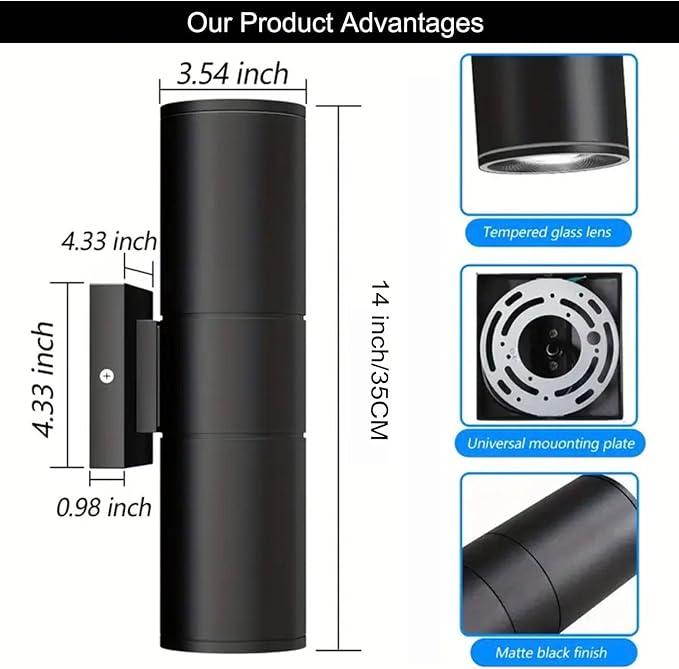 - 【Outdoor Wall light application】Up and down porch wall Light not only makes the outdoor wall sconce projects out the beautiful lightness, but also make your wall stand out, Ideal for the front doorway, wall,porch, garden, garage, yard.
