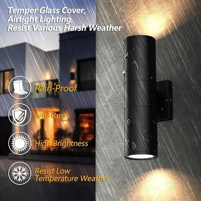 - 【Outdoor Wall light application】Up and down porch wall Light not only makes the outdoor wall sconce projects out the beautiful lightness, but also make your wall stand out, Ideal for the front doorway, wall,porch, garden, garage, yard.