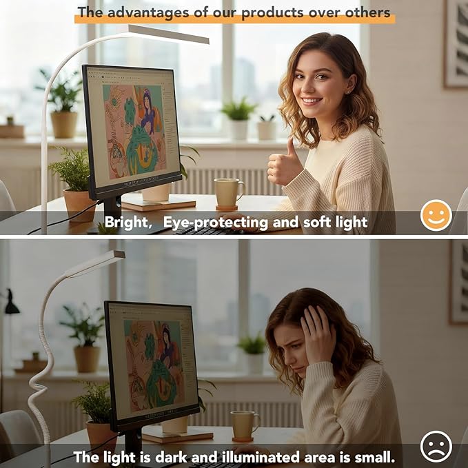 - LED Desk Lamp for Office Home, Eye- caring Table Lamp with 10 Meter Remote Control Function, 5 Modes 10 Brightness Adjustable Desk Light Flexible Gooseneek Clip - on Light for Studying, Workbench