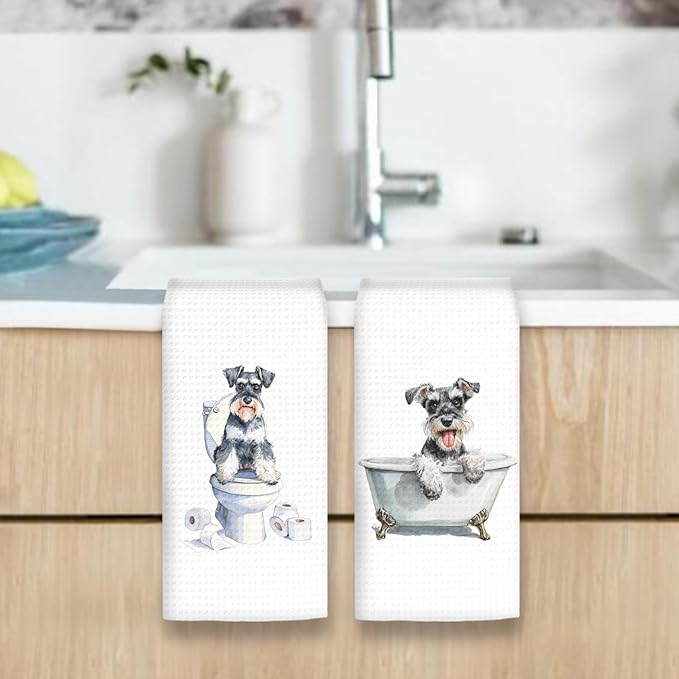 Funny Schnauzer Dog Hand Towels Set of 2, Gifts for Miniature Schnauzer Dog Owners Lovers, Puppy Pet Decor for Bathroom, Pet Lovers Gifts Toilet Hand Towels for Bathroom Washroom, 16x24In