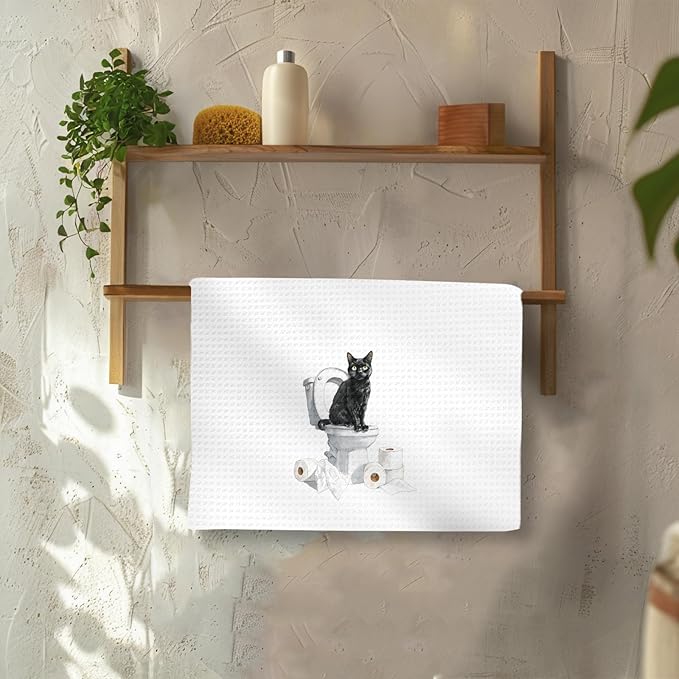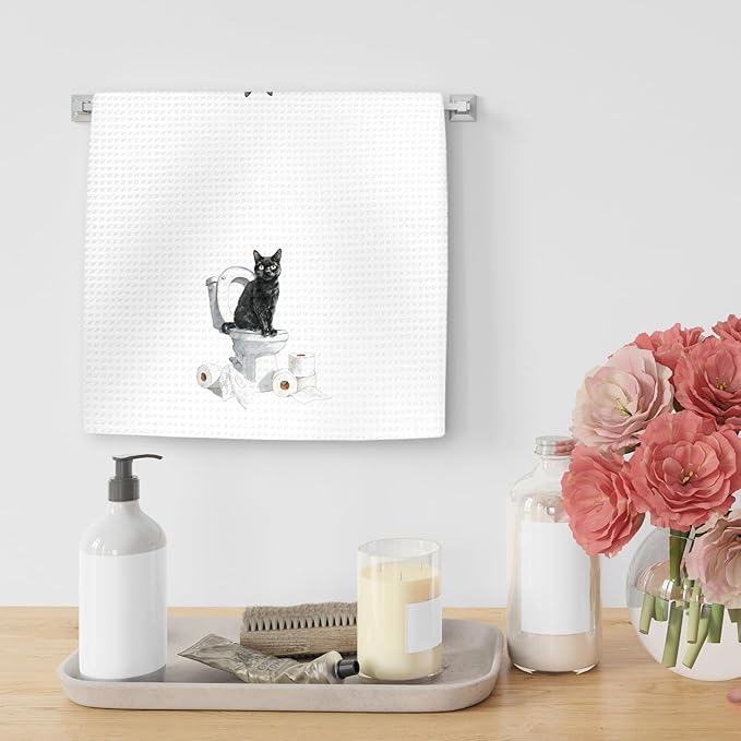 Funny Black Cat Bathroom Hand Towels, Gifts for Black Cat Owners Lovers Women Men, Cute Kitten Kitty Pet Decor for Bathrooms, Funny Pet Lovers Toilet Hand Towels for Bathroom Washroom,16x24In
