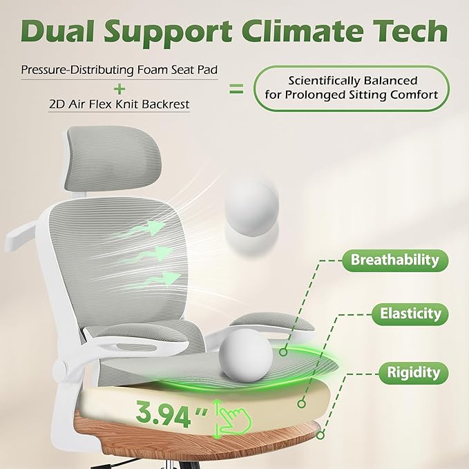 - Breathable All-Day Comfort: Stay cool and focused thanks to advanced breathable mesh fabric promoting continuous airflow. Combined with a high-density, collapse-resistant foam seat cushion, this mesh office chair prevents overheating and discomfort, even during marathon workdays