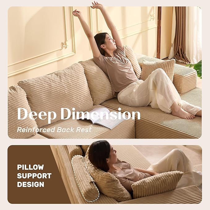 - Generous Dimensions with Deep Seating:Measuring 138 inches wide and featuring an extra deep 20.5 inch seat, this sofa offers ample room for ultimate relaxation. Whether you're curling up for a movie marathon or stretching out for a nap, the deep seat provides a spacious and indulgent seating experience like no other
