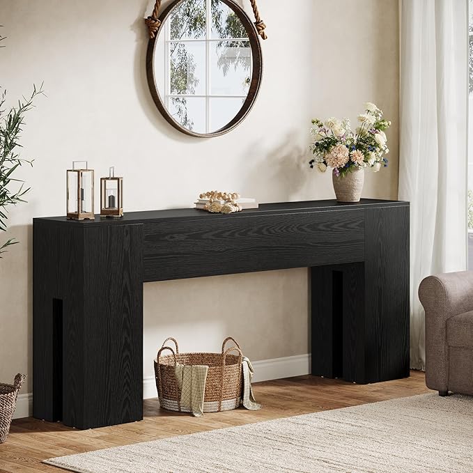 Tribesigns 71-Inch Long Console Table for Entryway, Farmhouse Sofa Console Behind Couch, Entry Table for Hallway, Foyer, Living Room, Black