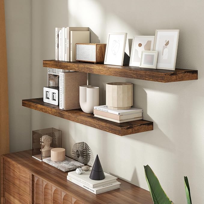 - Rustic & Modern Design: AXEMAN floating shelves made from high-quality engineered wood with a Rustic Brown finish, floating shelf blend rustic charm with modern functionality, enhancing both contemporary and traditional interiors.