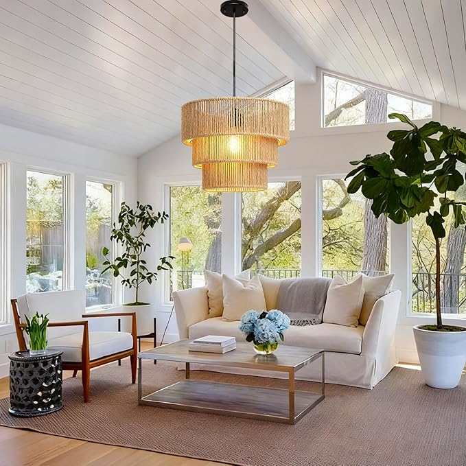 - 🌺Hand Rattan Fandelier:Crafted with natural hemp rope and rattan, this rattan pendant light features a retro dome design that blends rustic farmhouse warmth with trendy boho style. As a standout rattan fandelier, it brings unique texture and charm to any living space, while the classic silhouette of a rattan chandelier elevates both casual and formal interiors alike.