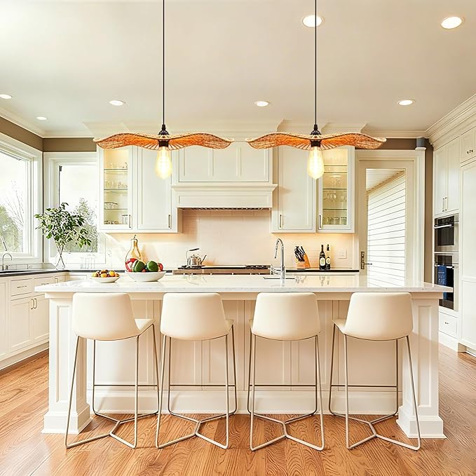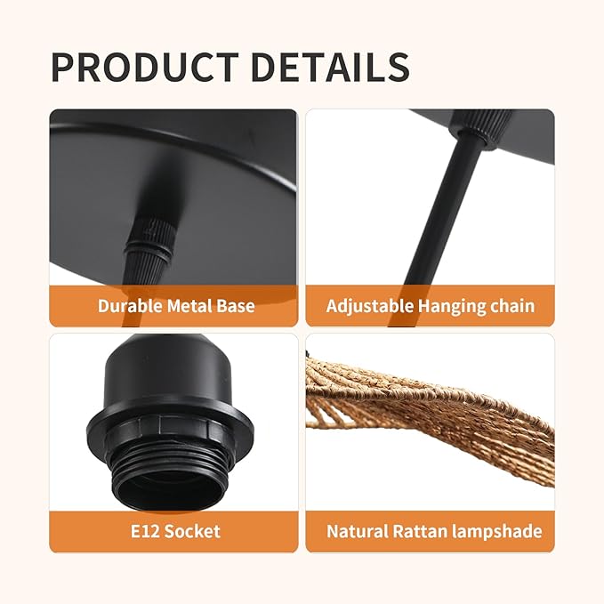 - 🌻Adjustable Design for Every Ceiling Type: 59" fully adjustable electric cord makes this rattan pendant lights adaptable to your space’s needs. It works flawlessly with flat, sloped, or vaulted ceilings—customize the hanging height to turn a rattan hanging lamp into the perfect centerpiece over a kitchen island, or let a rattan hanging light complement a dining table with ease.