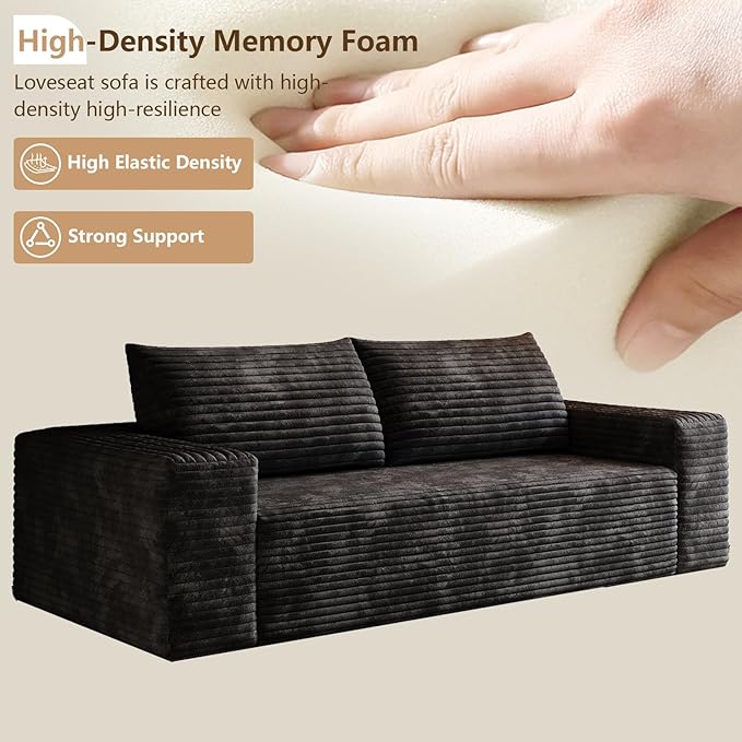 - 【Easy-Care Corduroy Upholstery】Enjoy luxury without the hassle. This corduroy cloud loveseat resists pilling and everyday wear while maintaining its plush softness. Simply spot clean to keep it looking fresh and elegant, making it the perfect blend of comfort, style, and durability for modern homes.