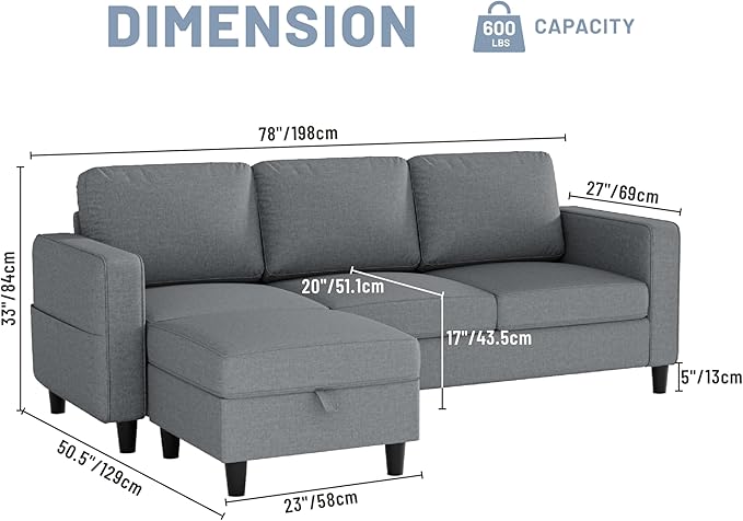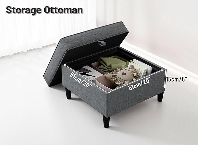 - Multi-Function Sofa Ottoman: Maximize clutter-free living! The removable ottoman doubles as a storage unit with ample storage space of 20×20×6 inches for seasonal clothing, blankets, books, or toys, perfect for compact spaces. Footrest can also serve as extra seating or a coffee table.