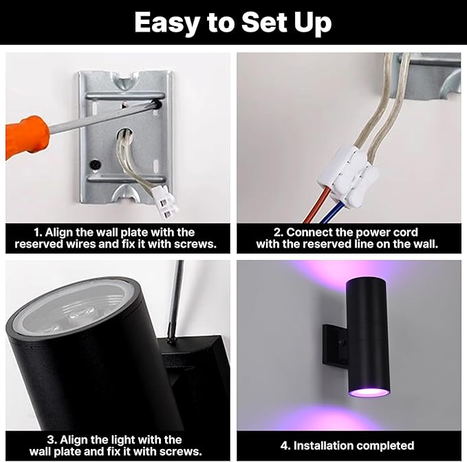 - 【Easy to Install】This indoor outdoor wall light does not require complicated wiring, very easy to install. Package includes component parts and installation instructions (with bulbs), ready to use out of the box. If you have any questions about our outdoor wall lights, please feel free to contact us. Our customer service will solve your problem within 24 hours