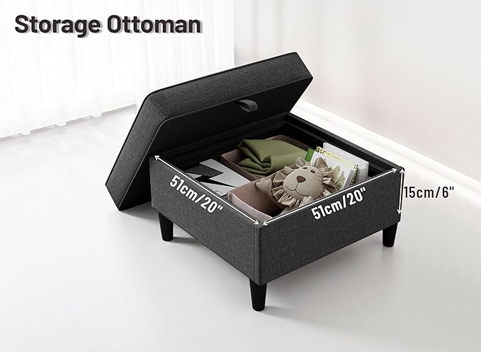 - Multi-Function Sofa Ottoman: Maximize clutter-free living! The removable ottoman doubles as a storage unit with ample storage space of 20×20×6 inches for seasonal clothing, blankets, books, or toys, perfect for compact spaces. Footrest can also serve as extra seating or a coffee table.