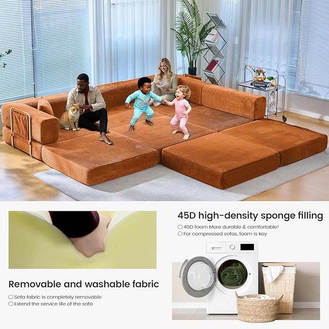 - Modular for various scenarios:Our floor Modular sofa is perfect for living rooms, apartments, bedrooms, guest rooms, and even children's playgrounds. It is so versatile! Children like to play on its comfortable surface. In addition, it is modular, making it easy to move in narrow spaces and fully utilizing every corner
