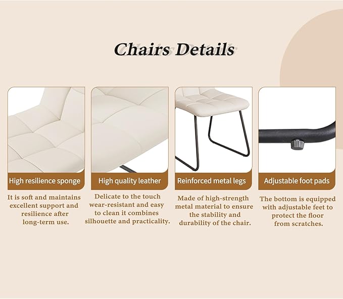 - Comfortable PU Leather Chairs – Includes 6 ergonomic dining chairs upholstered in soft white PU leather, easy to clean and maintain.