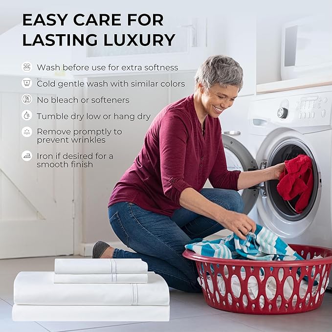 - Multiple Sizes for Every Bedroom: From Twin through California King, the MAYIL MANOR collection of bed sheets cotton combines precise stitching with long-lasting quality. Natural cotton may relax slightly after washing, but with proper care the sheets retain their shape and fit beautifully, offering dependable comfort in every room.