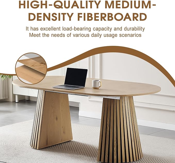 - Refined Jointed Wood Tabletop:Crafted with a jointed wood tabletop, this oval dining table displays natural woodgrain patterns and a smooth touch. The scratch-resistant, easy-to-clean surface keeps it elegant and durable for everyday use.