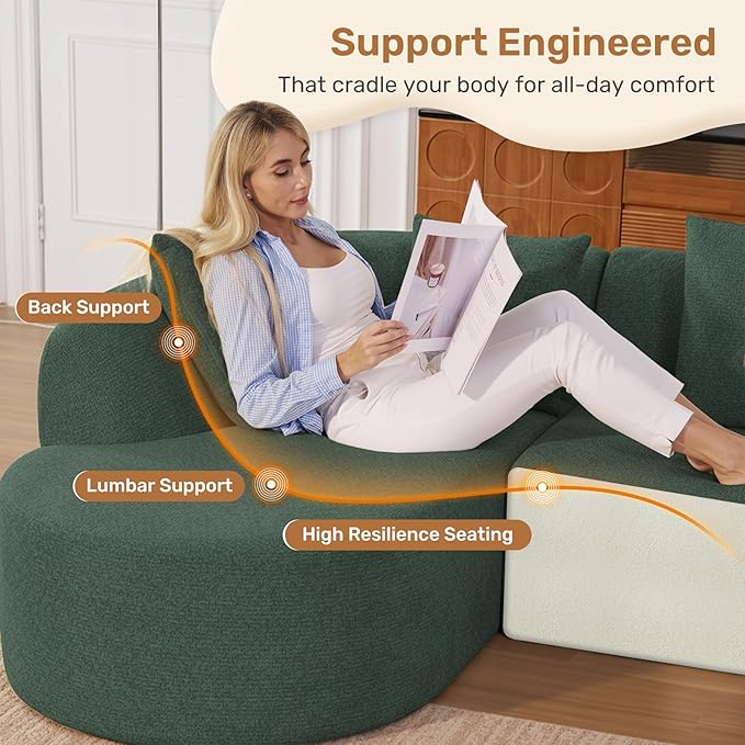 - Boneless Cloud Comfort:Experience the revolutionary feel of our boneless couch, designed without a rigid internal frame for unparalleled flexibility and support. Sink into the plush, high-resiliency foam that mimics the weightless sensation of a cloud couch, providing the perfect spot for total relaxation in your living room.