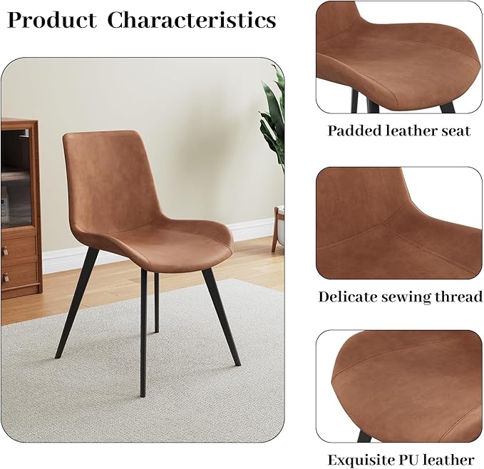 - 4. About Modern Dining Chair: This Leather dining chair is made of high-quality PU leather wrapped with high elastic sponge, which is comfortable and easy to clean. U-shaped cushion relaxes your hip muscles, carbon steel legs will not deform.