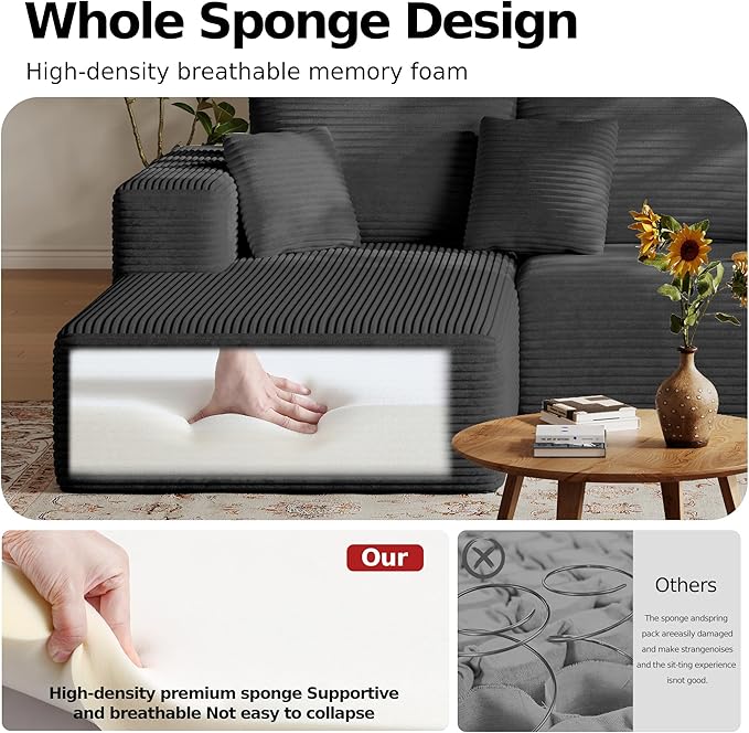 - Plush Corduroy & Detachable Sofa Set: Indulge in the premium feel of our plush corduroy fabric, which offers exceptional softness, warmth, and breathability. This detachable sofa set features a stain-resistant cover that is remarkably easy to remove and machine wash, ensuring your modular sectional sofa stays fresh, hygienic, and looking new for years with minimal effort.