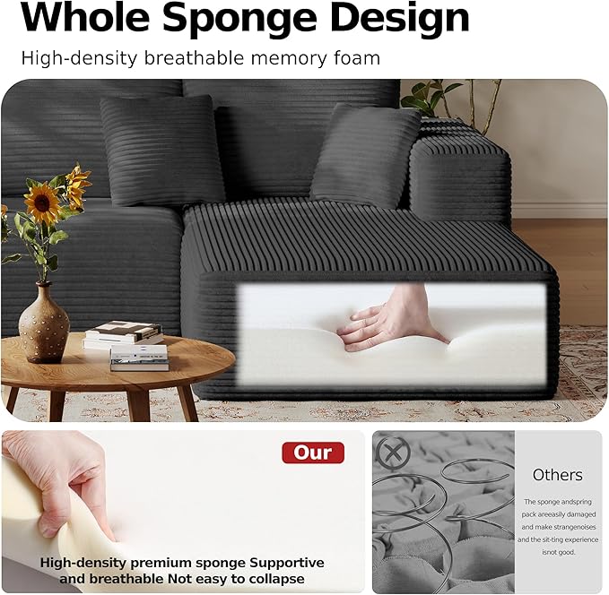 - Plush Corduroy & Detachable Sofa Set: Indulge in the premium feel of our plush corduroy fabric, which offers exceptional softness, warmth, and breathability. This detachable sofa set features a stain-resistant cover that is remarkably easy to remove and machine wash, ensuring your modular sectional sofa stays fresh, hygienic, and looking new for years with minimal effort.