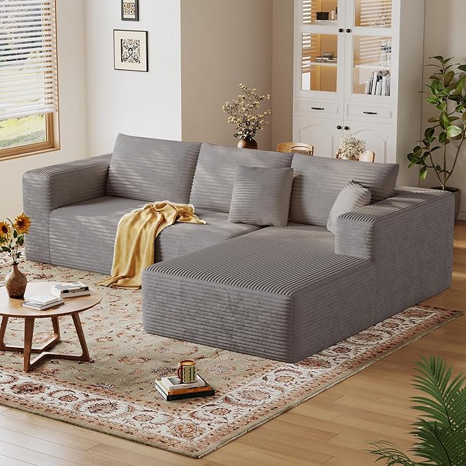108'' Modular Sectional L-Shaped with Chair,Deep Seat Boneless Corner Couch for Living Room,Plush Corduroy Couch with Detachable Sofa Set,No Assembly(Right Facing Chaise,Camel)