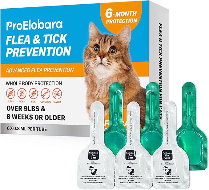 Topical Flea and Tick for Large Cats: Waterproof Topical Cat Flea and Tick – Fast-Acting & Long-Lasting at Home Control for Cats Over 9 lbs and 8 Weeks or Older – 6-Dose Supply