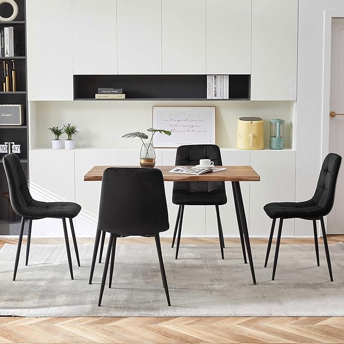 NORDICANA Black Dining Chairs Set of 4, Modern Kitchen & Dining Room Chairs for 4, Upholstered Velvet Cushion Seat and Metal Legs (4 Black Chairs)