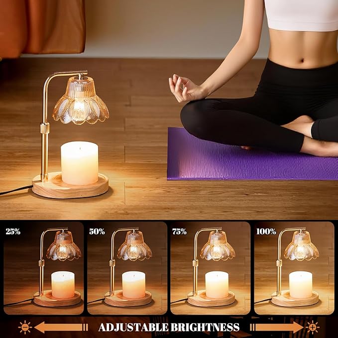 - [4-Dimming Levels & Adjustable Height]:Customize your scent throw and ambiance with 4 adjustable brightness/heat settings. From a soft glow for subtle fragrance to a brighter light for faster melting and stronger aroma. The flexible gooseneck or adjustable height design accommodates candles of various sizes and shapes, ensuring optimal melting for your jar candles, tins, or votives