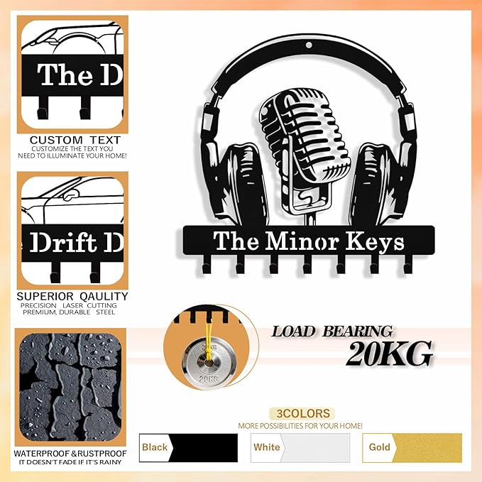 - Personalized Key Holder - Click “Customize Now” and enter your desired name or text to create a truly unique and personalized piece. This music key holder wall mount is not only practical but also serves as a distinctive home décor item, showcasing your personal style