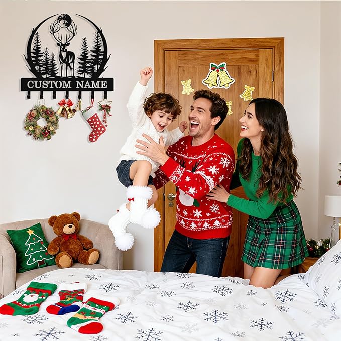 Personalized Deer Forest Key Holder Wall Mount, Custom Metal Key Holder for Wall with Name, Custom Keys Rack Hanger with Hooks for Entryway, Front Door, Hallway, Living Room, Kitchen