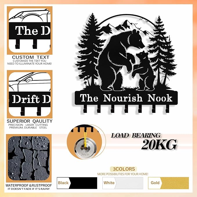 - Personalized Key Holder - Click “Customize Now” and enter your desired name or text to create a truly unique and personalized piece. This bear key holder wall mount is not only practical but also serves as a distinctive home décor item, showcasing your personal style
