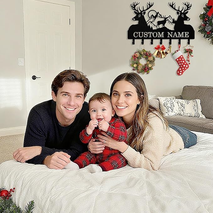 Personalized Deer Key Holder Wall Mount, Custom Metal Keys Hanger for Wall with Name, Custom Key Rack Holder with Hooks for Entryway, Front Door, Hallway, Living Room, Kitchen