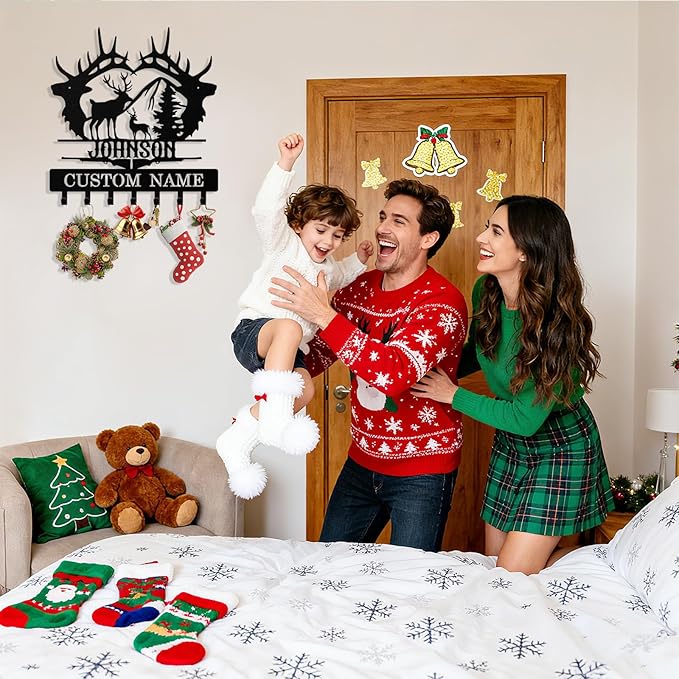 Personalized Deer Key Holder Wall Mount, Custom Metal Keys Hanger for Wall with Name, Custom Key Rack Holder with Hooks for Entryway, Front Door, Hallway, Living Room, Kitchen