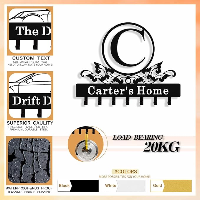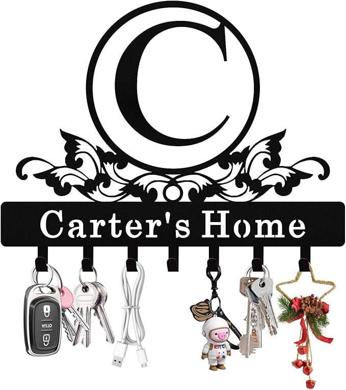 - Personalized Key Holder - Click “Customize Now” and enter your desired name or text to create a truly unique and personalized piece. This monogram key holder wall mount is not only practical but also serves as a distinctive home décor item, showcasing your personal style