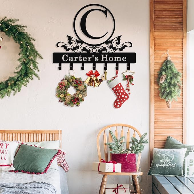 Personalized Monogram Key Holder Wall Mount, Custom Initial Name Metal Key Holder for Wall, Custom Keys Rack Hanger with Hooks for Entryway, Front Door, Hallway, Living Room, Kitchen