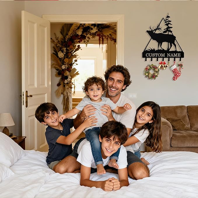 Personalized Deer Key Holder Wall Mount, Custom Metal Keys Hanger for Wall with Name, Custom Key Rack Holder with Hooks for Entryway, Front Door, Hallway, Living Room, Kitchen