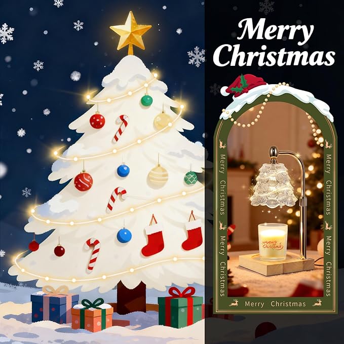 - Festive Christmas Tree Design: Adorn your space with our candle warmer lamp, elegantly crafted in the shape of a Christmas tree. Candle warmer blends a wooden base, a sleek metal pole, and a crystal-clear glass shade, creating a festive centerpiece that elevates your holiday decor in the living room, bedroom, or kitchen