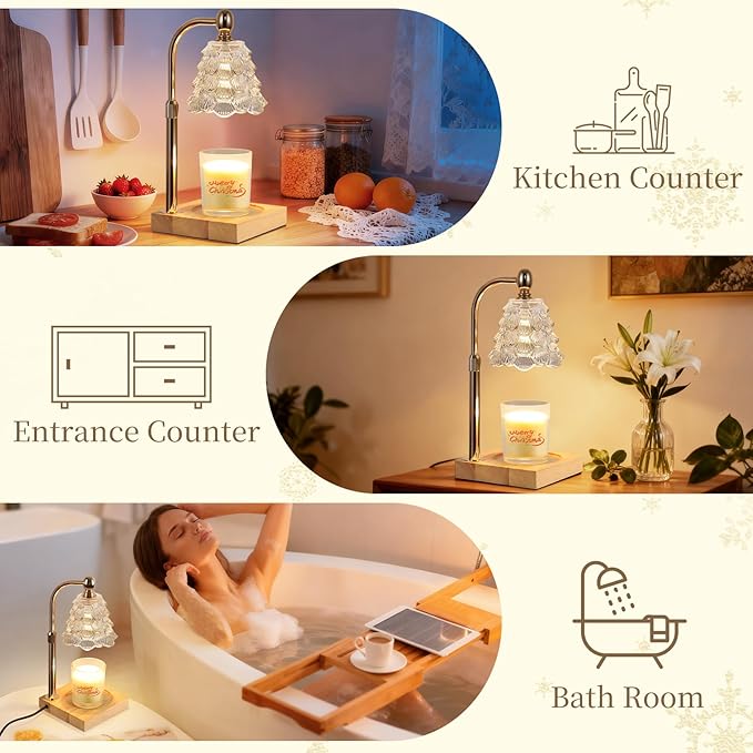 - Premium, Adjustable & Stable: Lamp candle warmer features an adjustable metal pole to accommodate candles up to 7.8 inches tall. The non-slip base pad ensures stable operation on any surface, making this festive decoration as sturdy as it is beautiful