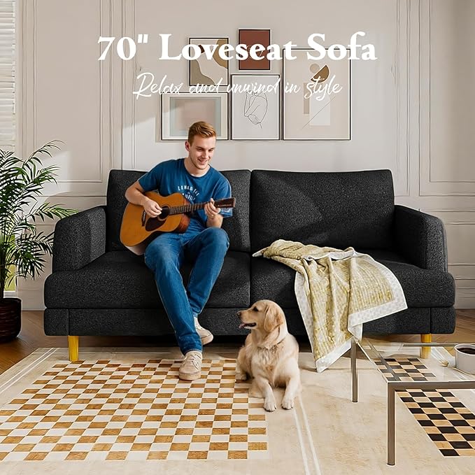 - Spacious Comfort for Everyday Living: Measuring a generous 70 inches in length, this love seat is ideal for two to three people, making it perfect for cozy movie nights, casual hangouts, or even solo relaxation. Designed with deep seats and plush cushions filled with high-resilience spring foam, this sofa delivers an exceptional level of comfort that supports you for hours—whether you're lounging, reading, or working from home.
