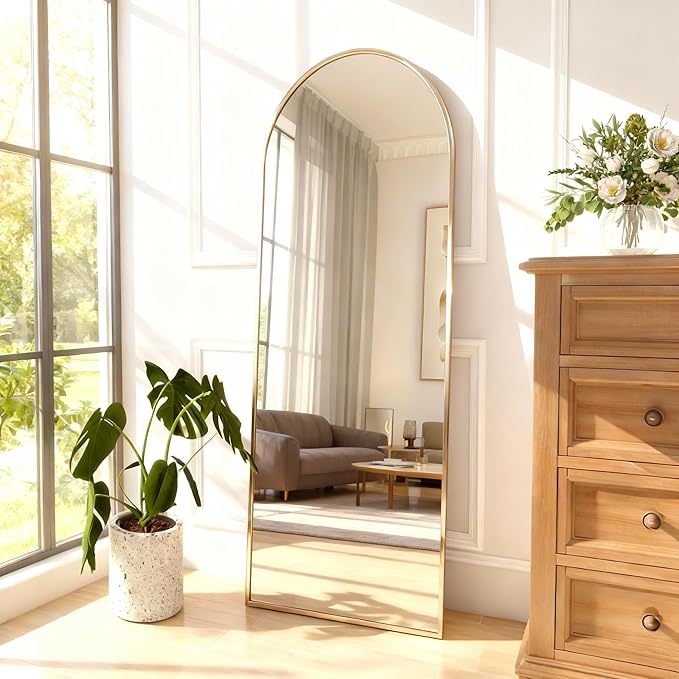 - 1. Elegant Arched Design, Elevate Any Space Our mirror features a sleek, modern arched top and a slim aluminum alloy frame that adds a touch of sophistication to any room. Whether in your bedroom, entryway, or home gym, it’s not just a mirror—it’s a statement piece.