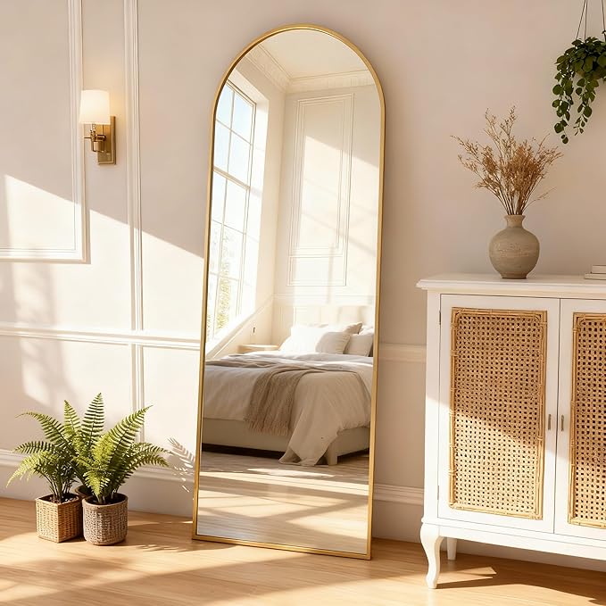 Arched Full Length Mirror,65" L x 24" W Floor Mirror, Aluminum Alloy Frame, Shatterproof Glass - Free Standing, Leaning or Wall Mounted for Bedroom, Living Room, Entryway, Modern Home (Gold)