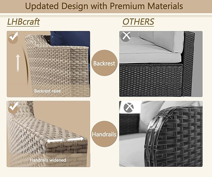 - 【SPACIOUS & COMFORTABLE】This outdoor furniture set features a larger size with higher seating height and depth. Combined with an ergonomic design, it provides an exceptional outdoor experience.
