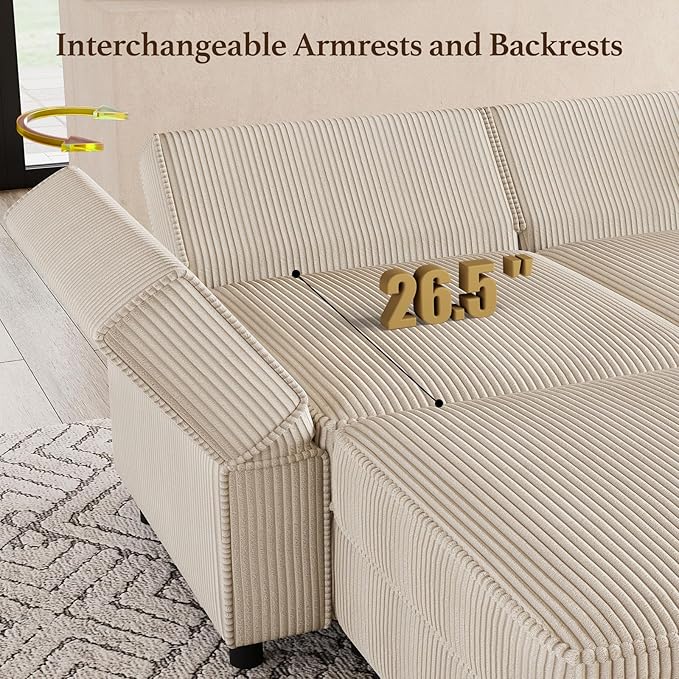 88.6" 9 Seat Modular Sectional Sofa with Deep Storage Seat,Corduroy Comfy Sectional Couch Convertible Modular Sleeper Sofa Couch with Movable Ottoman,Upholstered Couches for Living Room,Beige